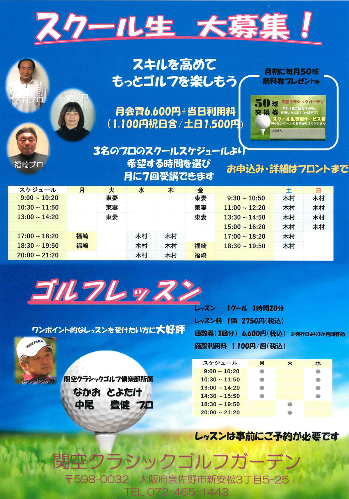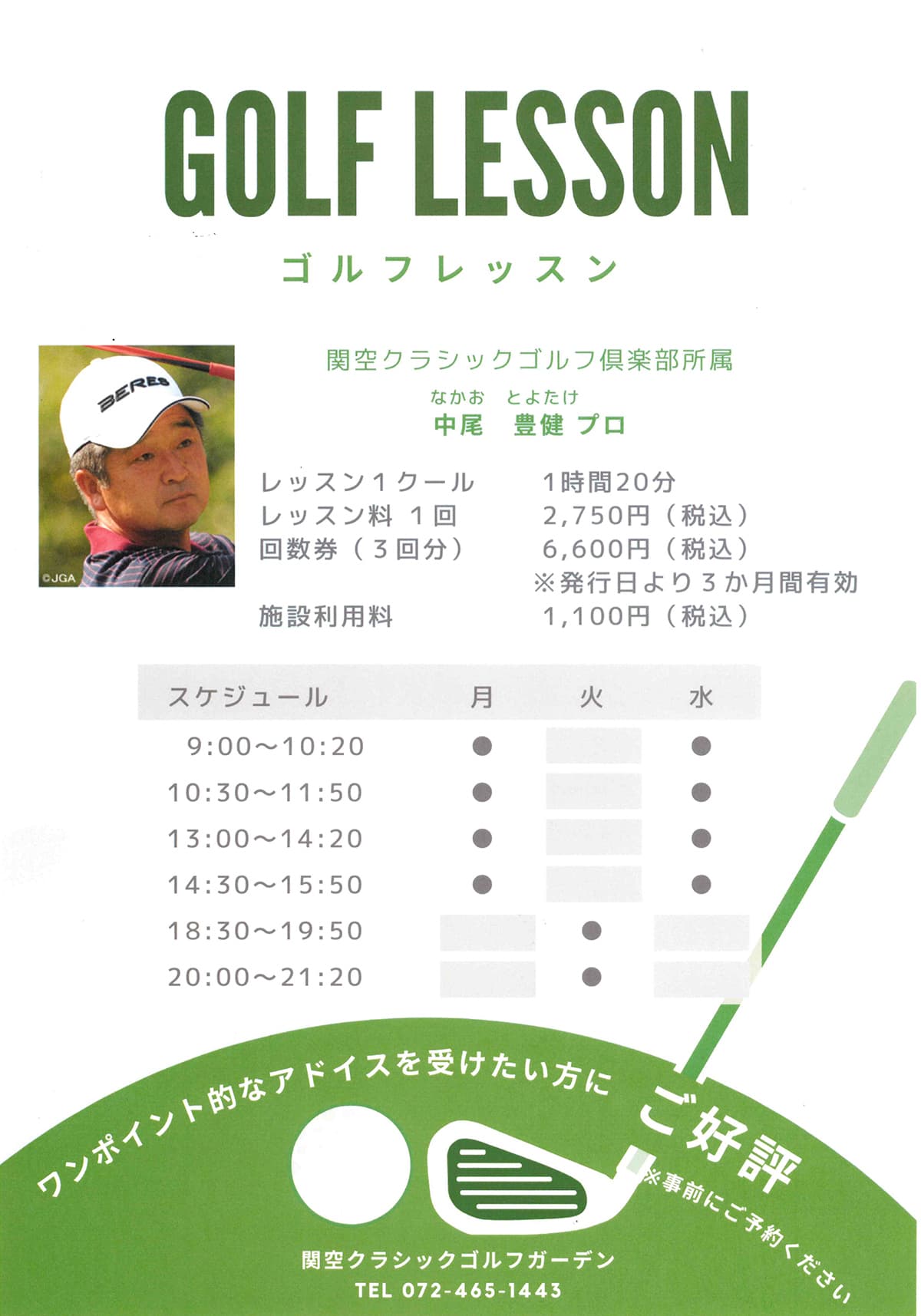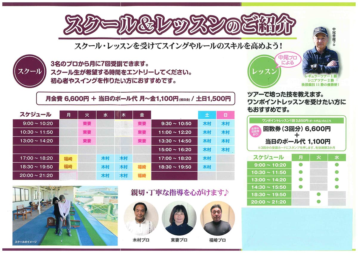 所属プロによるゴルフレッスンを行なっております