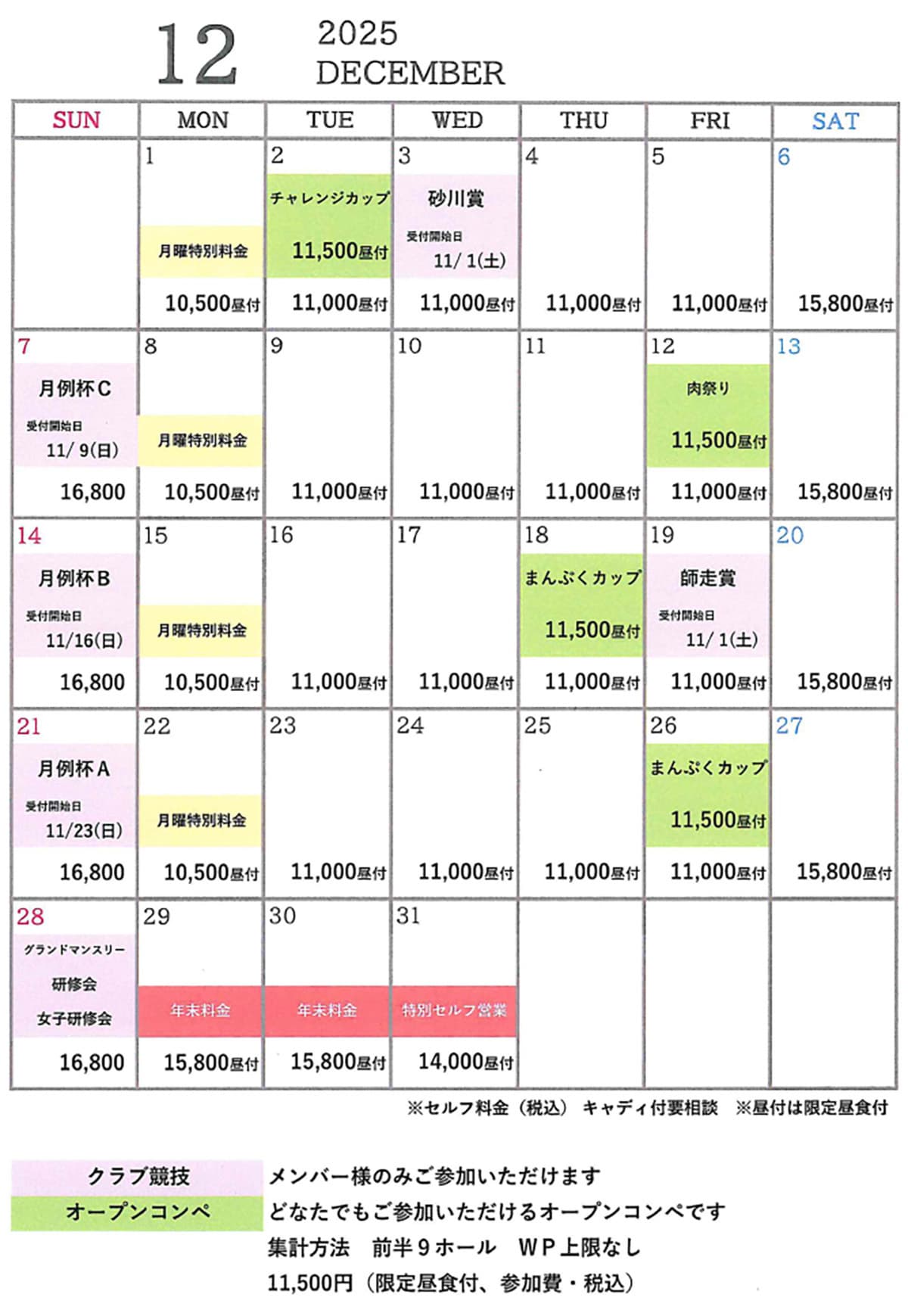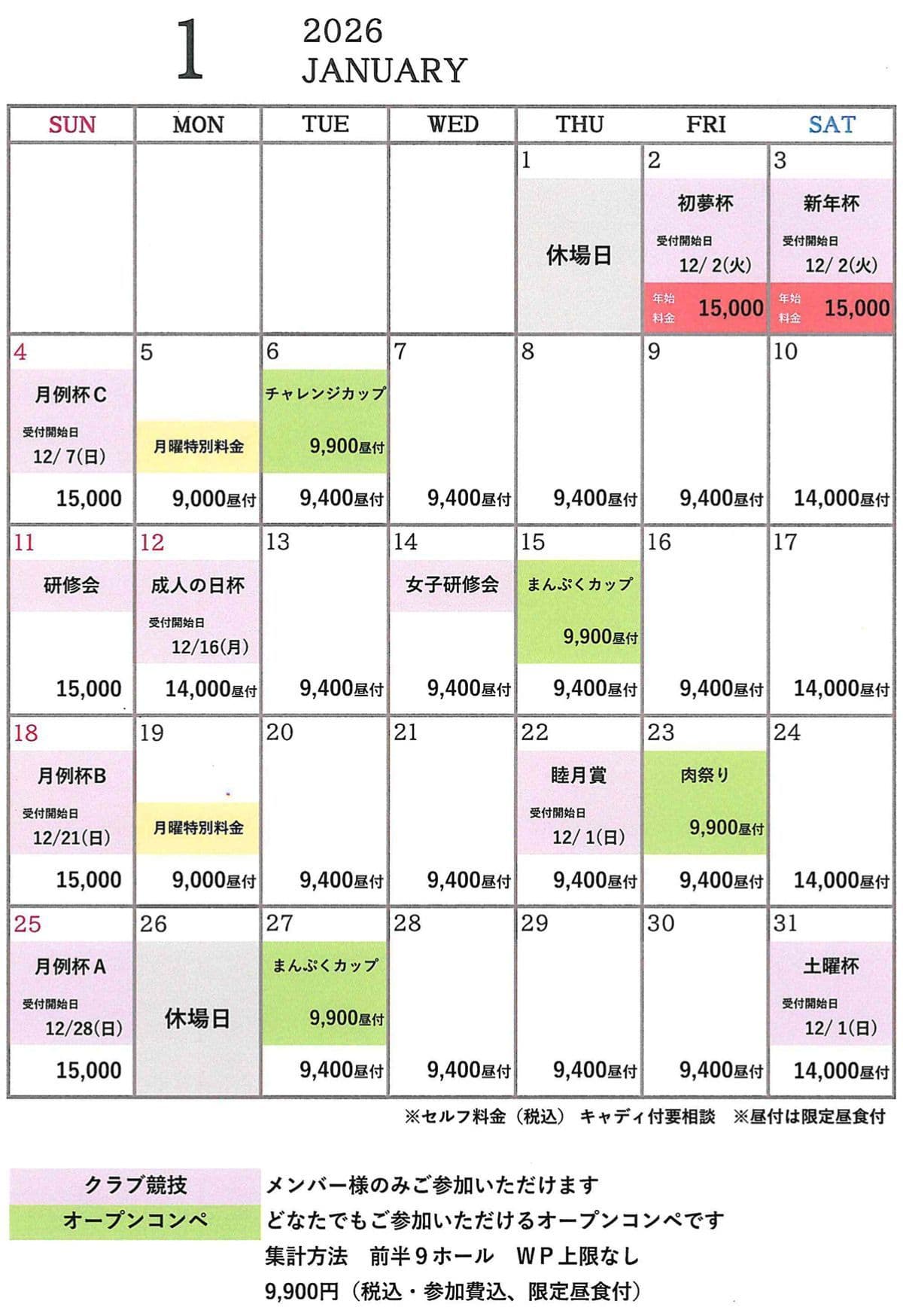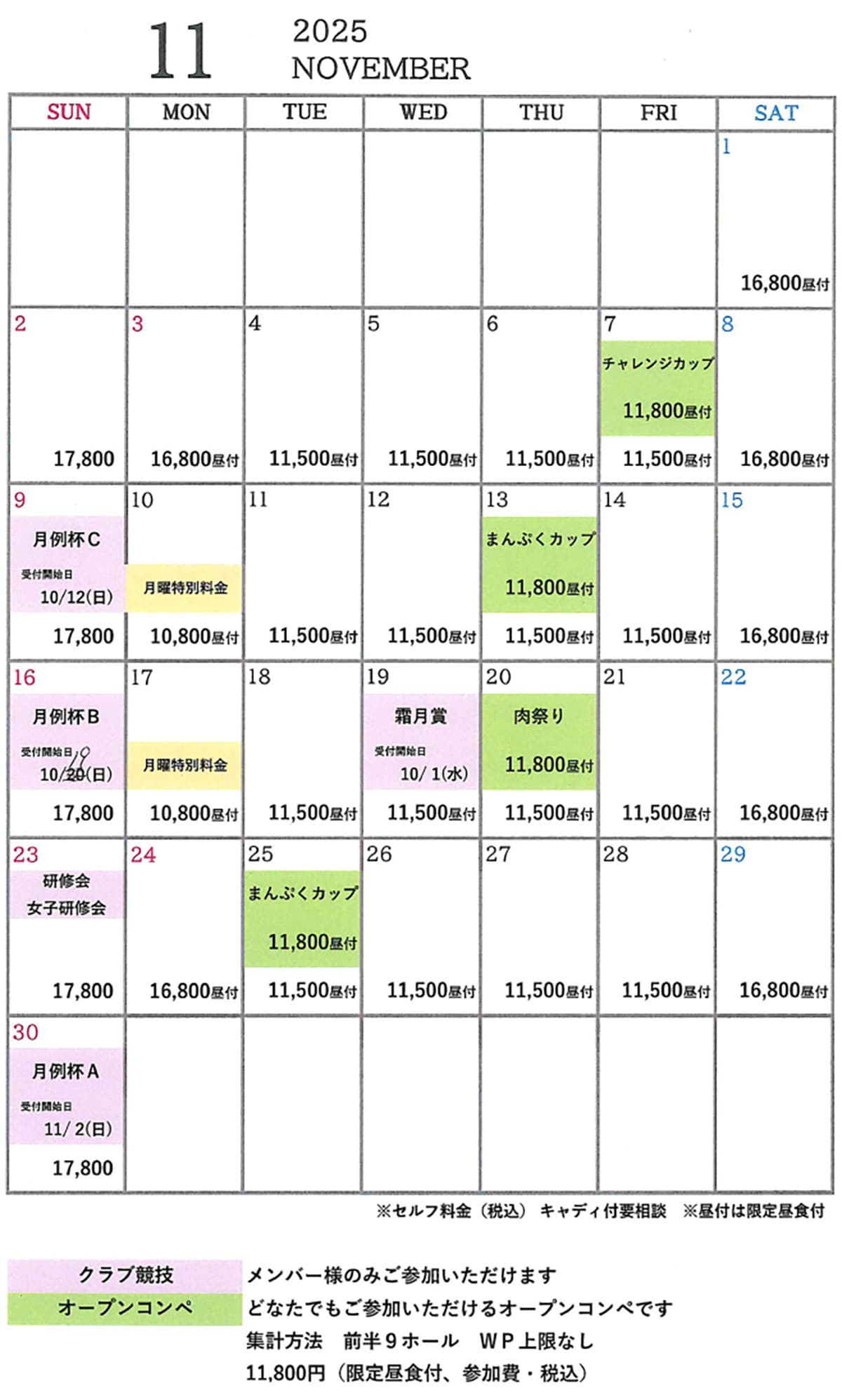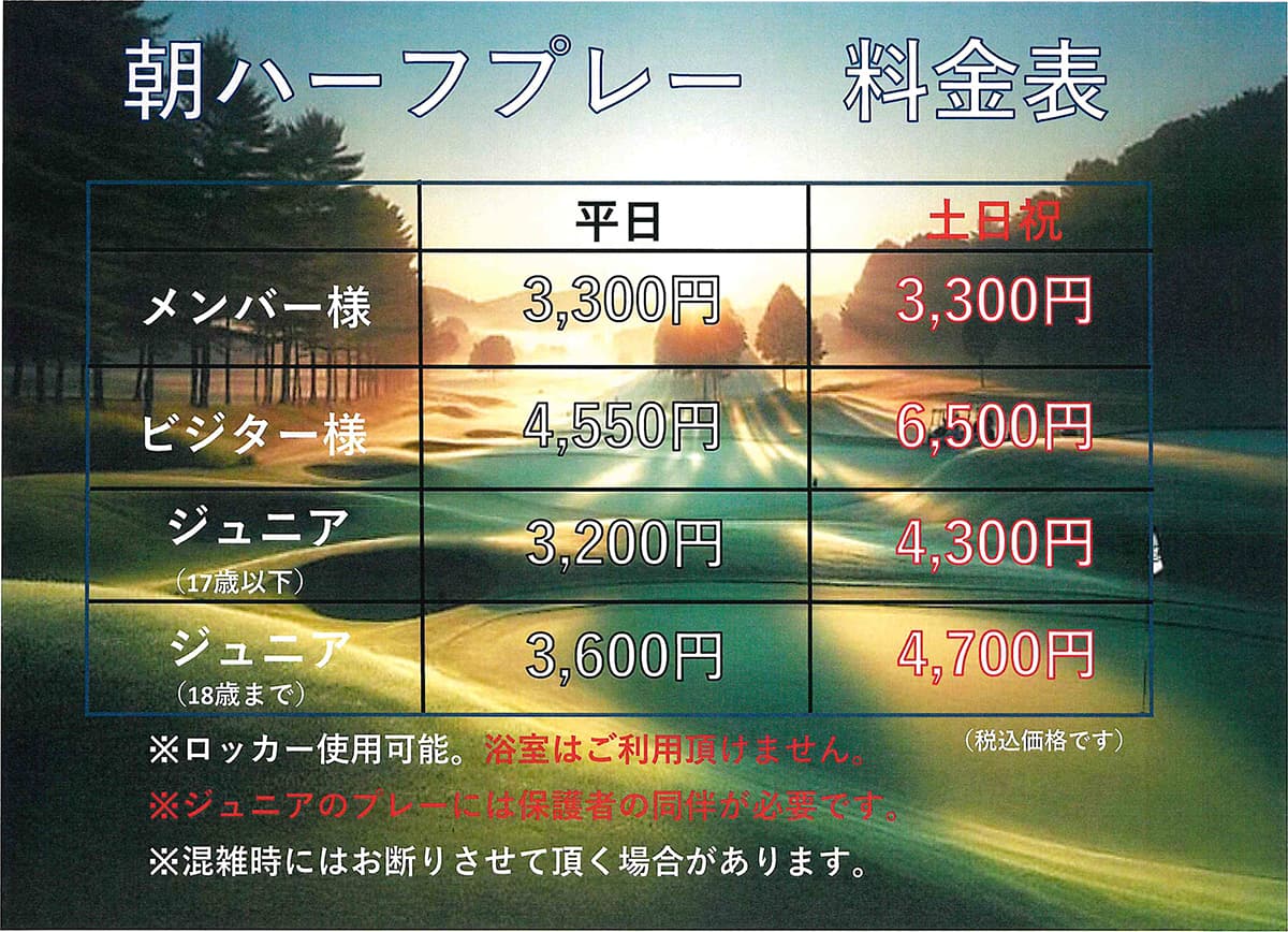 下記料金には、消費税およびゴルフ利用税・振興基金が含まれております。