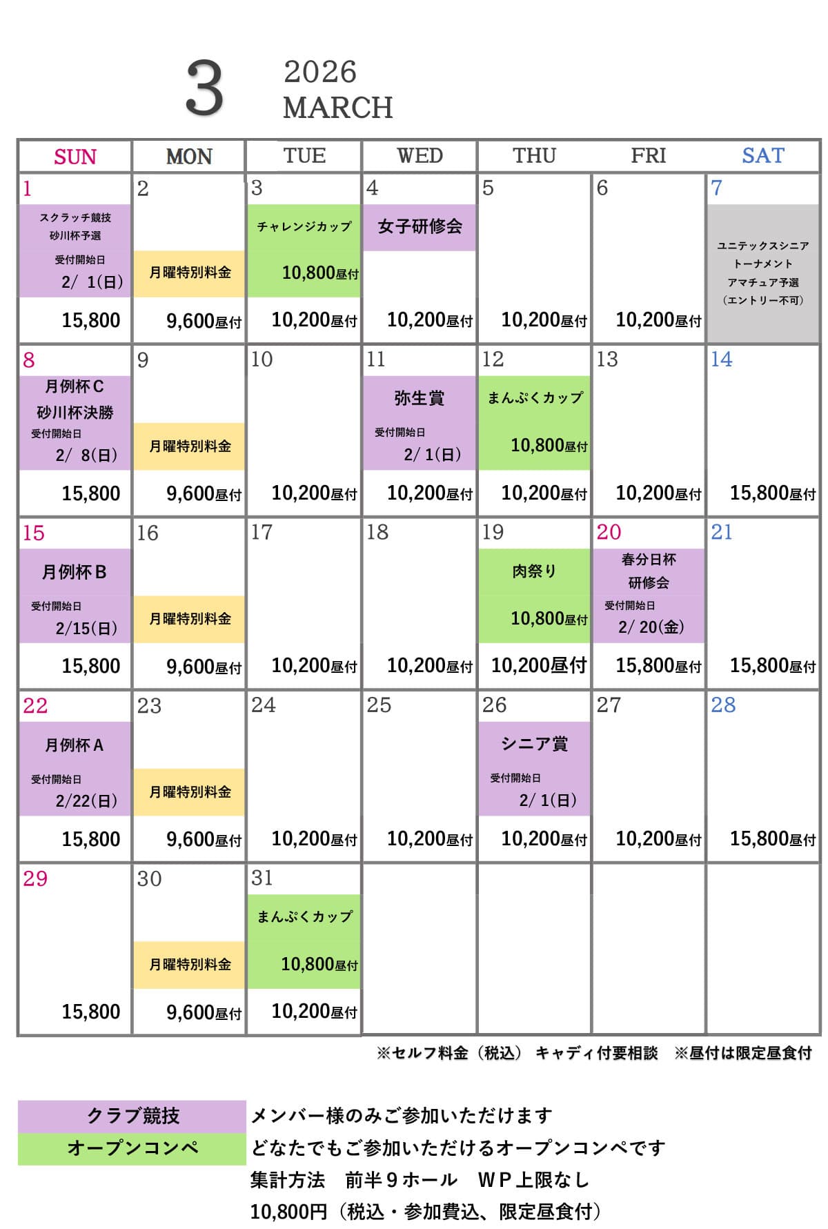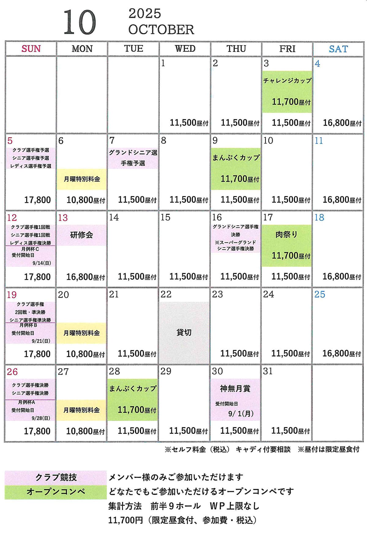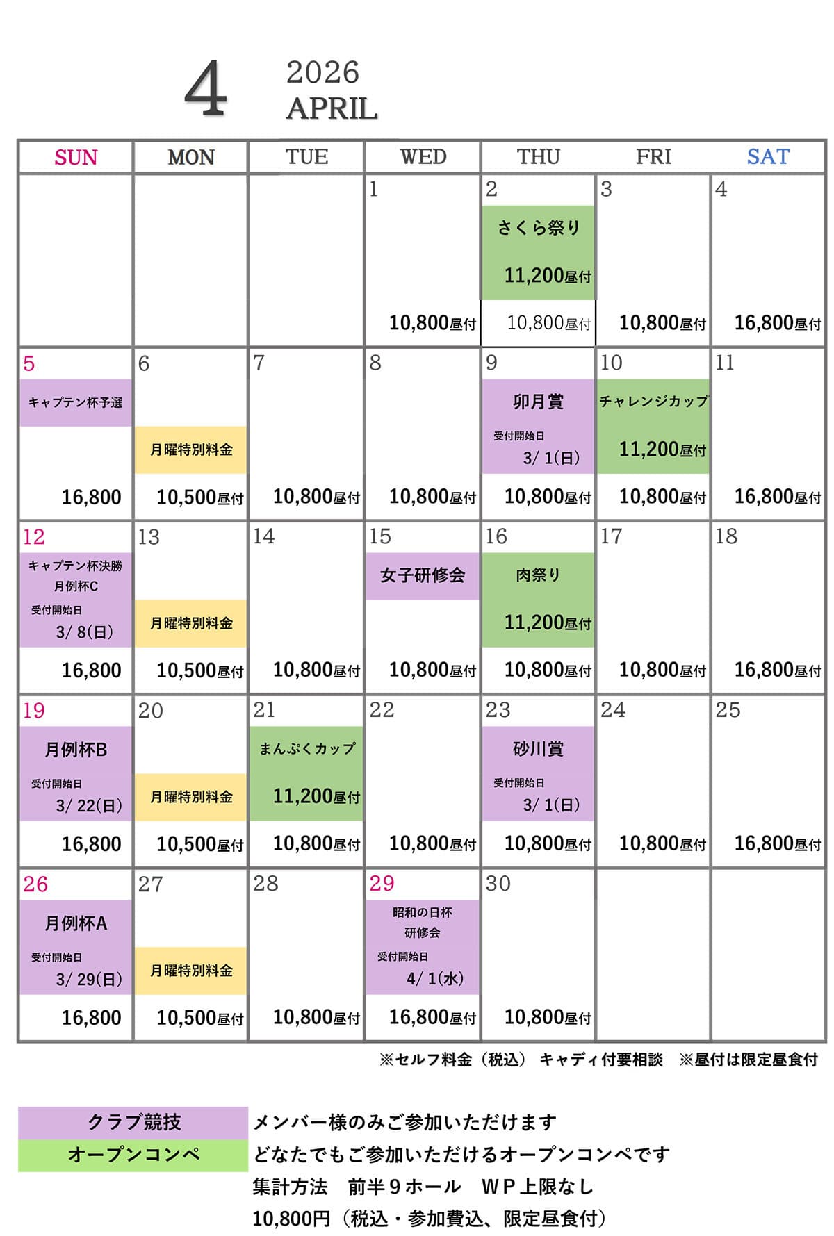 下記料金には、消費税およびゴルフ利用税・振興基金が含まれております。