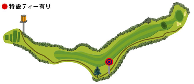 前方の的を目標にフェアウェイ中央まで215ヤード。