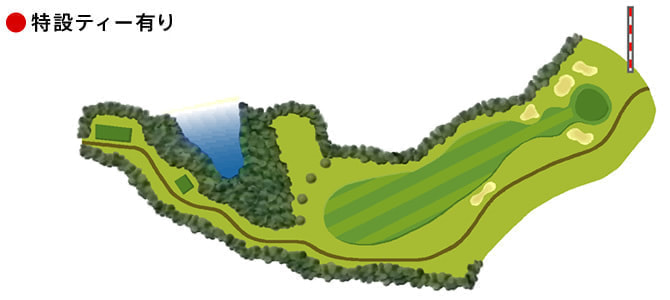 グリーンの表面が見えないがポール狙いで。