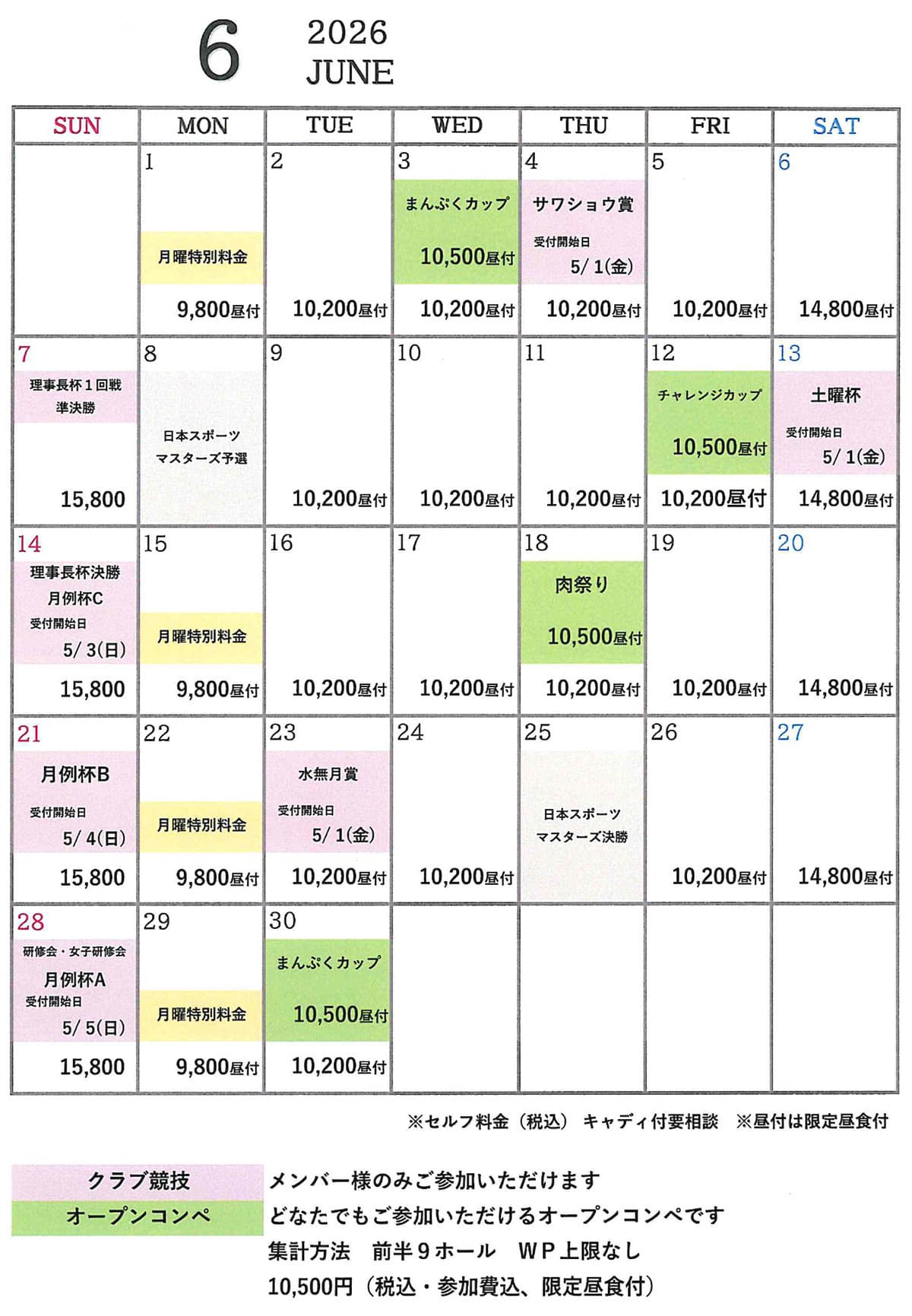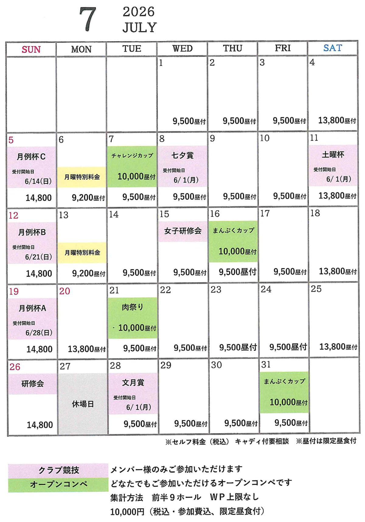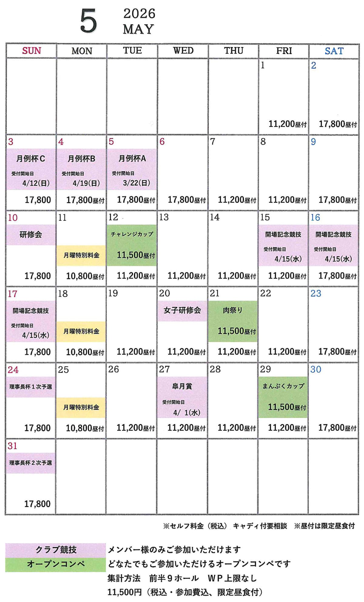 下記料金には、消費税およびゴルフ利用税・振興基金が含まれております。